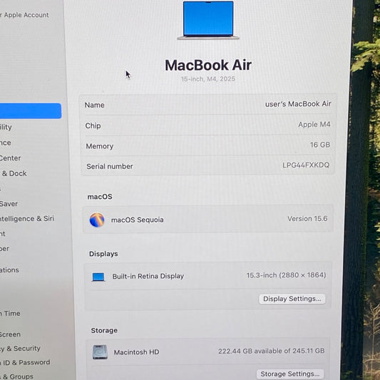 2025 Apple MacBook Air 15" M4 10C GPU 4.5GHz 16GB RAM 256GB SSD A3241