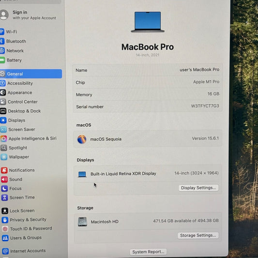 2021 Apple MacBook Pro 14" M1 Pro 14C GPU 3.2GHz 16GB RAM 512GB SSD A2442